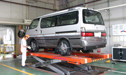 車検整備が終了した車輌はこの検査場で徹底した最終チェックを受けます。